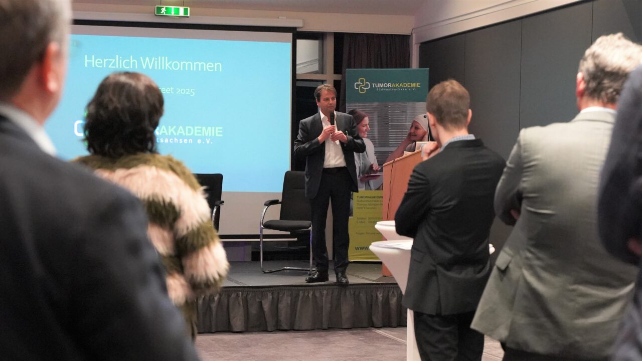 Am 10.12.2025 trafen sich in Chemnitz Krebsspezialistinnen und -spezialisten aus Praxen und Kliniken der Region, Vertreter der onkologischen Zentren aus Zwickau und Chemnitz, Klinikgeschäftsführerinnen und -führer sowie Vertretungen der Berufsverbände und Politik, um über die Zukunft der onkologischen Versorgung der Region zu diskutieren.